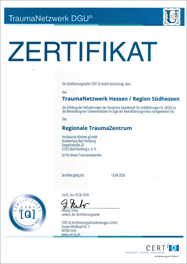 Die Hochtaunus-Kliniken sind neben der Prüfung nach DIN EN ISO 9001:2015 in folgenden Bereichen zertifiziert: