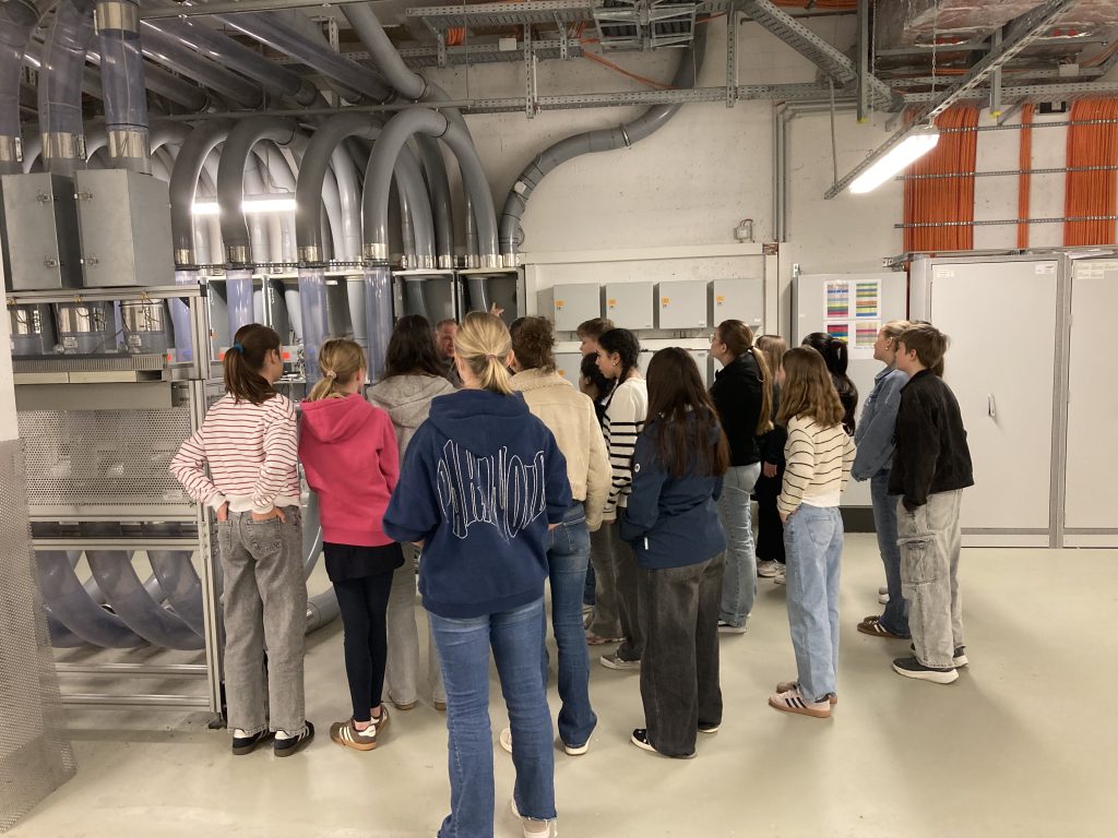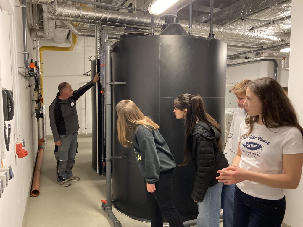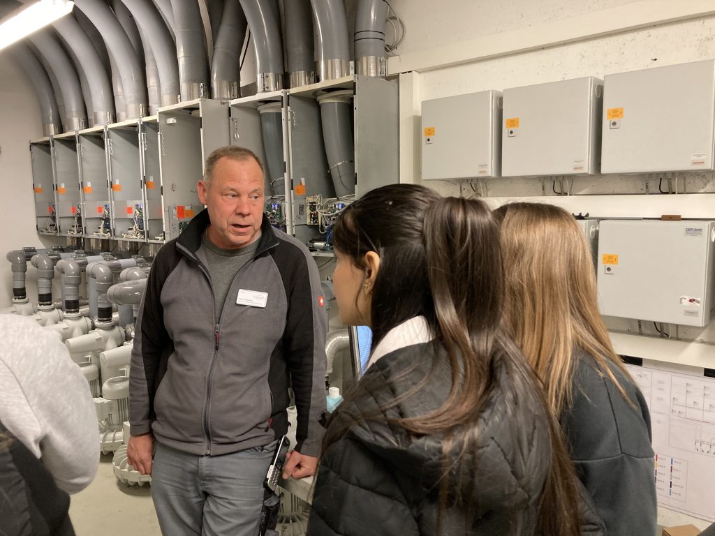 Maxima, aus der 6a der Solgrabenschule, wagt sich als erste nach vorne und lässt sich von Daniel Bladowski alles genau erklären.