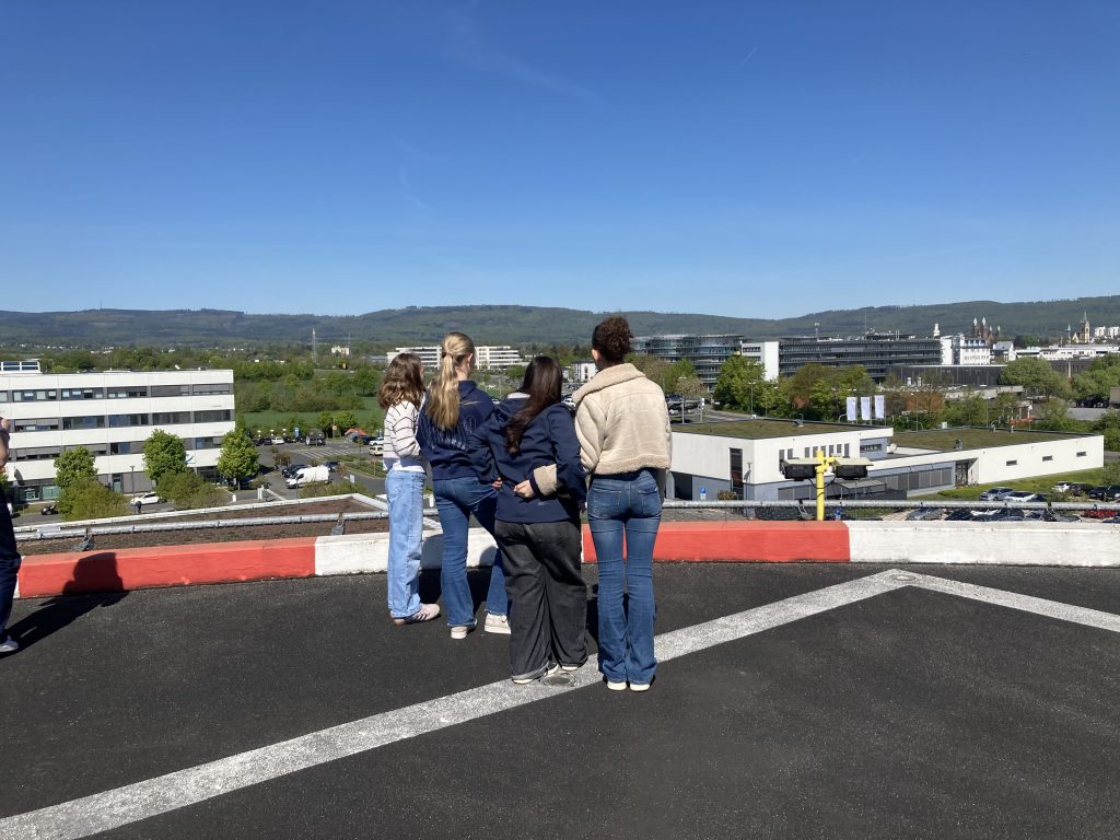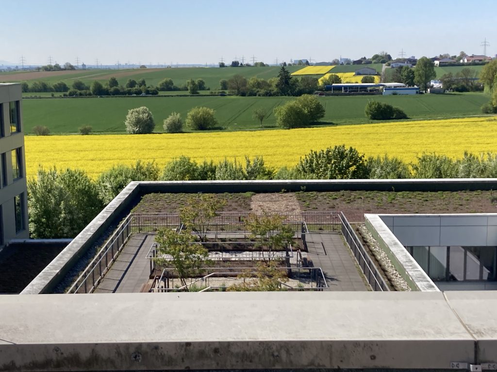 Zum Abschluss vom Helikopterplatz aus ein Blick auf die blühenden Rapsfelder in der Ferne und den Therapiegarten auf dem Dach. Nun aber wieder vier Stockwerke runter in die Cafeteria. Küchenchef Tristan Herrle und sein Team warten mit dem Mittagessen auf die Girls and Boys. Großer Dank gebührt Pizzabäcker Alexander, der im Accord ein leckeres Pizzablech nach dem anderen, köstlich belegt, in den Ofen geschoben hat.