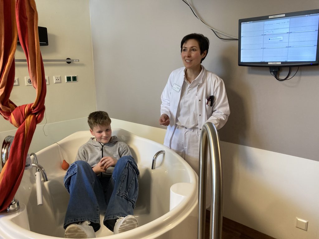 Und sogar gebären könne man unter Wasser, erst vor kurzem habe es eine wunderschöne Wassergeburt gegeben, sagt die leitende Oberärztin. Bei einer gesunden Schwangeren und einem unkomplizierten Geburtsverlauf steht einer Wassergeburt nichts im Wege.