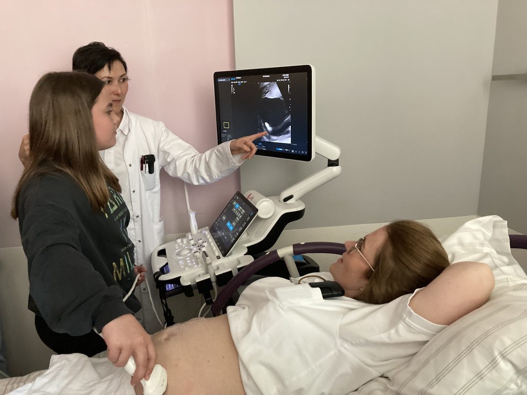 Aber mal ernsthaft, was ist spannender, als wenn plötzlich ganz ungeplant eine „echte Schwangere“ vorbeikommt, die sogar auch noch selbst Ärztin für Frauenheilkunde in unserer Klinik ist…