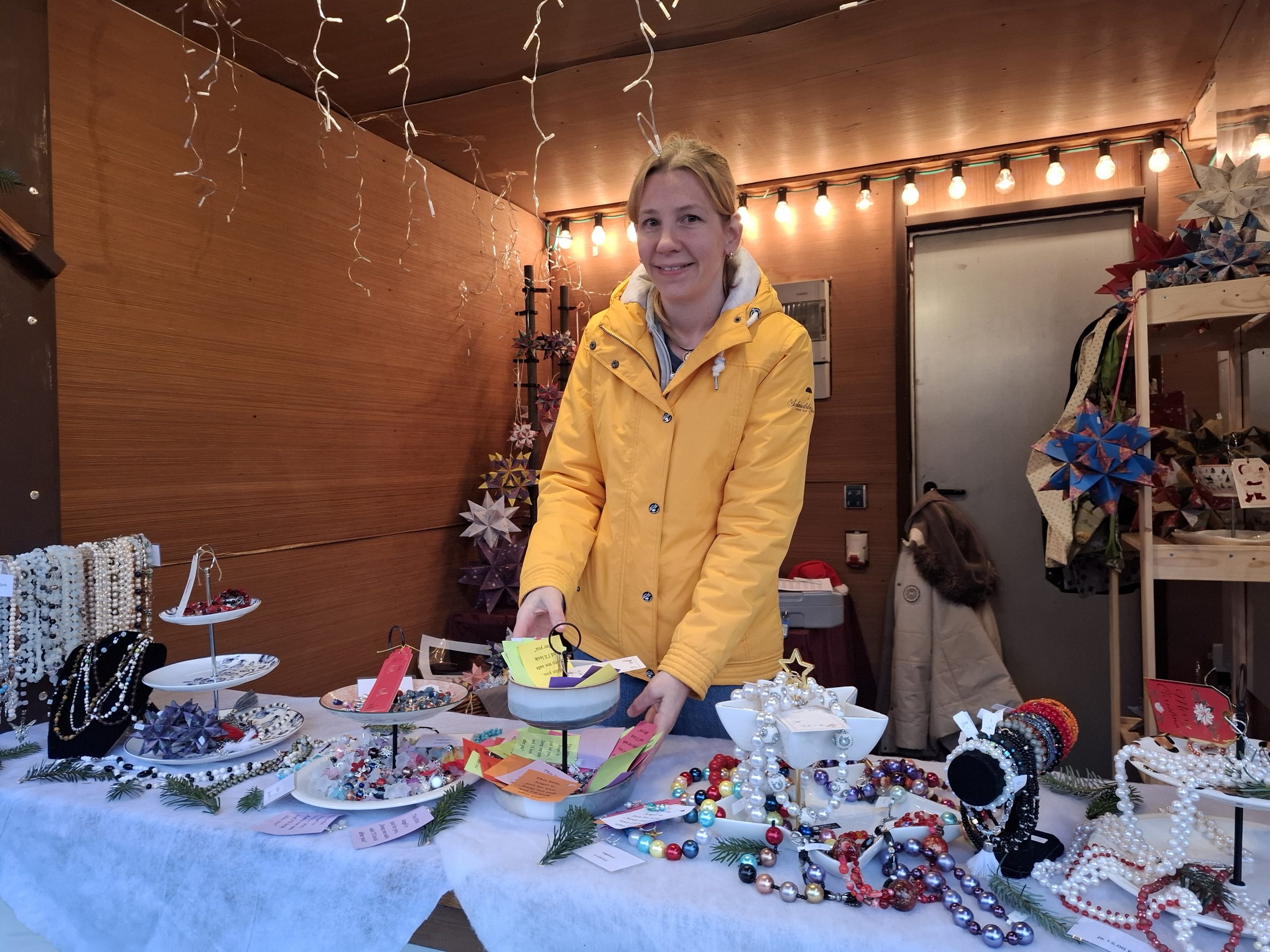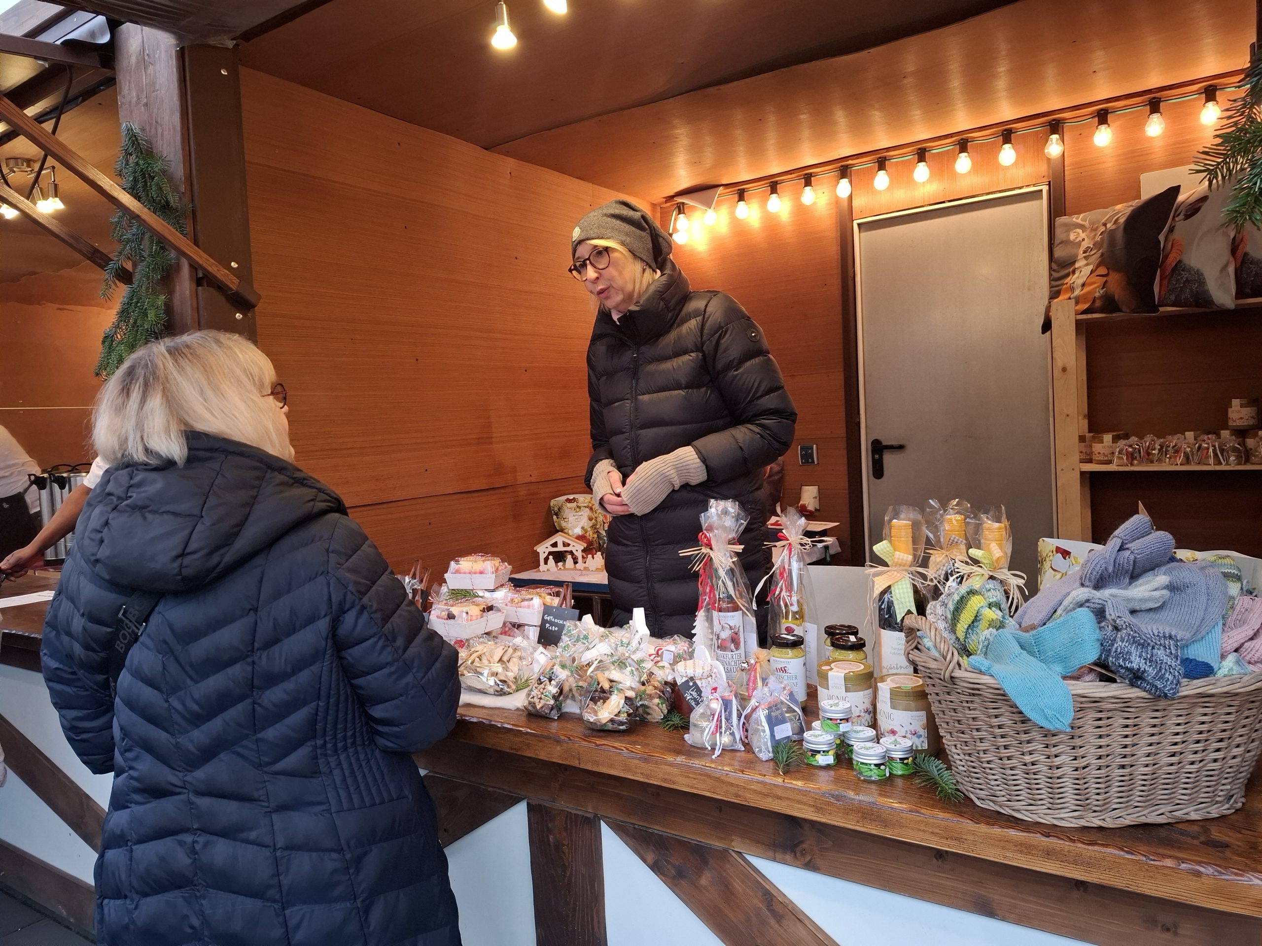 Die Mitarbeitenden der Klinik haben die Buden mit eigenen kulinarischen Kreationen, wie hausgemachten Weihnachtsplätzchen, Macarons, Honig, Marmeladen sowie selbst gekeltertem   Apfelsaft bestückt. Außerdem gibt es bei den Budenbetreiberinnen und -betreibern auch Künstlerisches wie handgemachte Seifen, Kerzenständer, originelle Etageren, Keramikengel, Origami-Sterne und vorweihnachtliche Accessoires im Angebot.